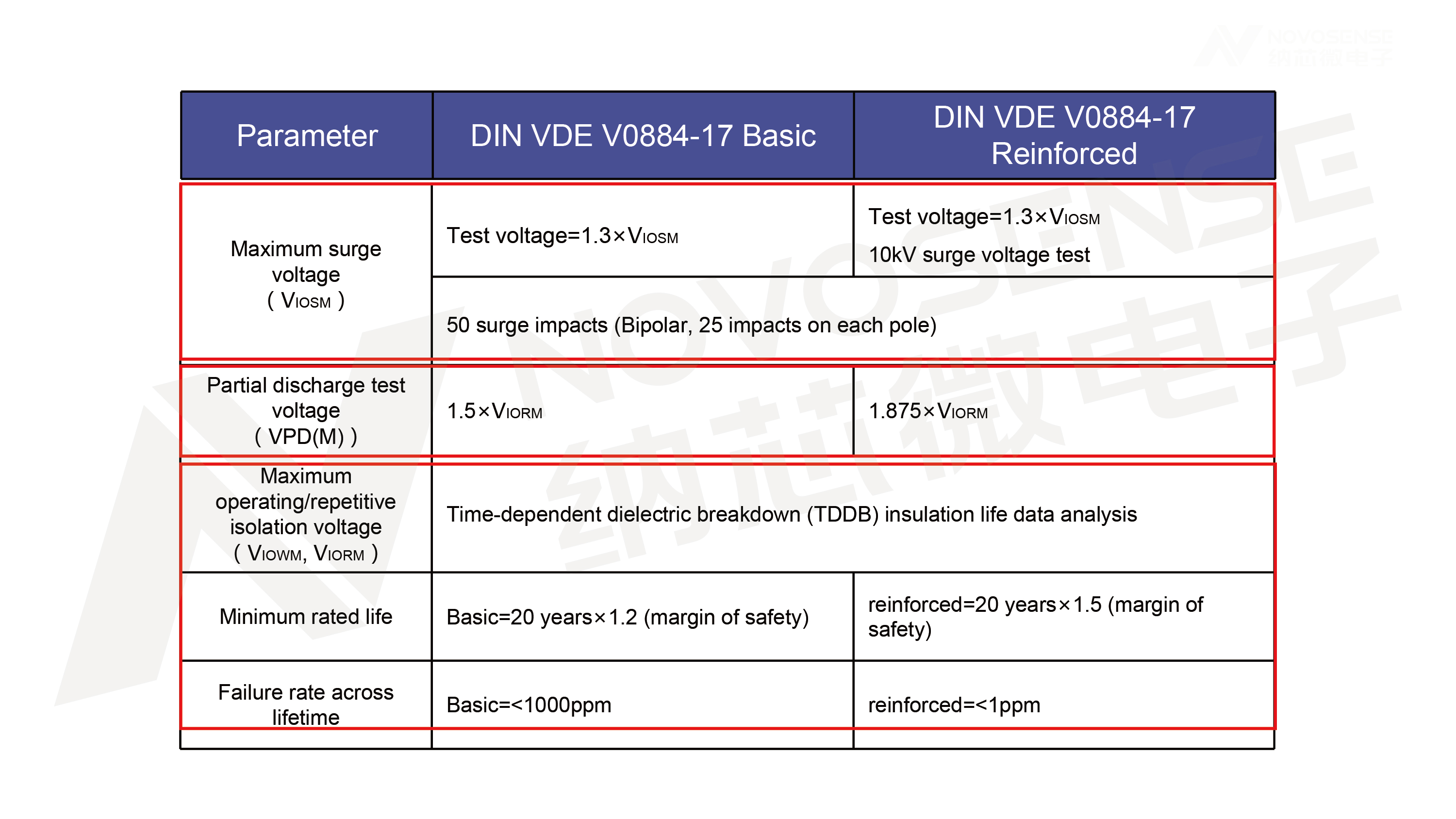 Under the current VDE standards, both basic and reinforced isolators have corresponding test standards and parameter specifications.